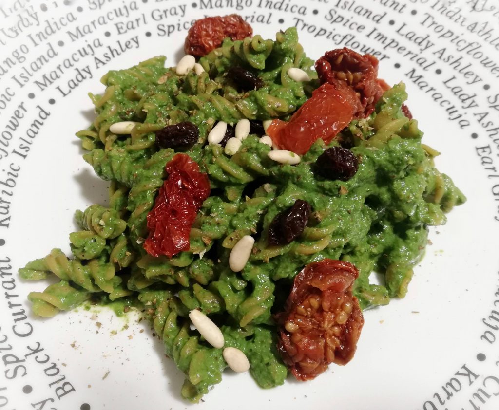 Por otra parte, en una sartén antiadherente, prepara la vegamel (bechamel vegana). Ten preparada la bebida vegeral de antemano. Si está un poco caliente, mucho mejor. Calienta un chorrito de AOVE y añade dos cucharadas de harina integral de espelta. Remueve integrando la harina. Ve añadiendo poco a poco, en chorritos cada minuto, aproximadamente, la leche y no pares de remover, integrando bien la harina y la leche, siempre a fuego bajo o medio. Hacer vegamel requiere paciencia y atención, pero te saldrá sin problemas. Déjala en un punto en que esté algo más líquida de lo que quieres que te quede a la hora de tomarla. En ese punto, añade sal, pimienta negra y nuez moscada. Prueba para corregir el sabor y dejarla a tu gusto.